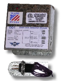The DD1 sensing-probe, clips to the drain pan using a galvanized