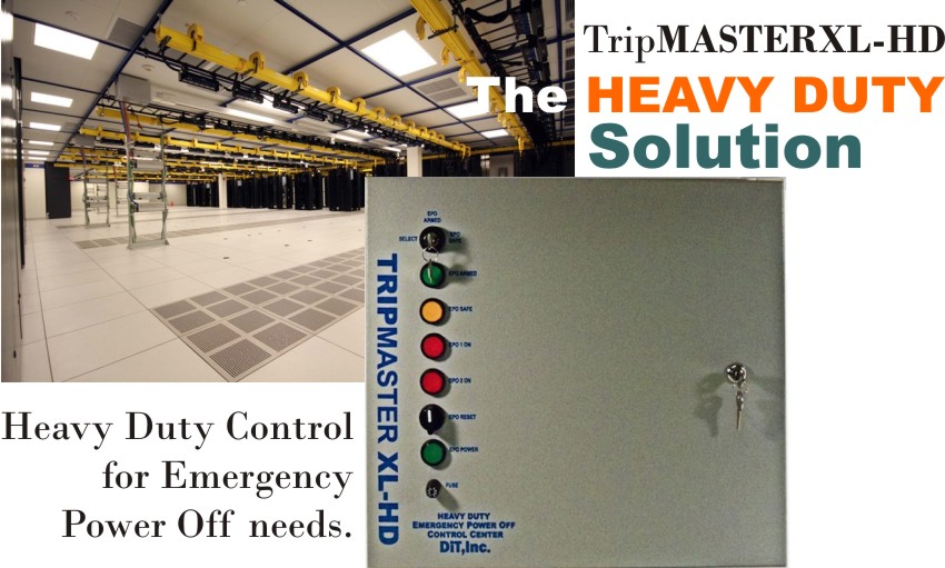 The TripMasterXL HD (Heavy Duty) Emergency Power Off Control Center (EPOCC) is designed to provide 16 Form “C” EPO output contacts rated for 5amps@120VAC continuous loads. Each relay output is field selectable to the EPO inputs to provide the best EPO solution for any facility. The TMXL-HD simplifies designing EPO control systems by providing heavy duty relay outputs for 16 outputs, each isolated high current relay output is protected with MOVs to ensure long relay life.